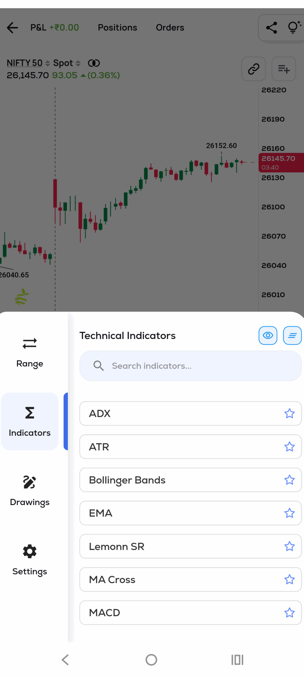 - Orders are placed almost instantly from within the chart — crucial for F&O traders where every second can shift prices.