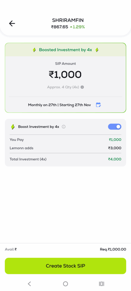 So whether you are investing in blue-chip stocks or your favorite long-term bets, Lemonn’s Power SIP helps you stay disciplined and efficient. However, it’s important to note that Power SIP amplifies both gains and losses. Meaning, if stock prices fall, your losses will also be multiplied by the leverage just like profits, and you will still need to pay interest on the Lemonn funded amount. So, it is crucial to stay aware of the market volatility and invest responsibly.