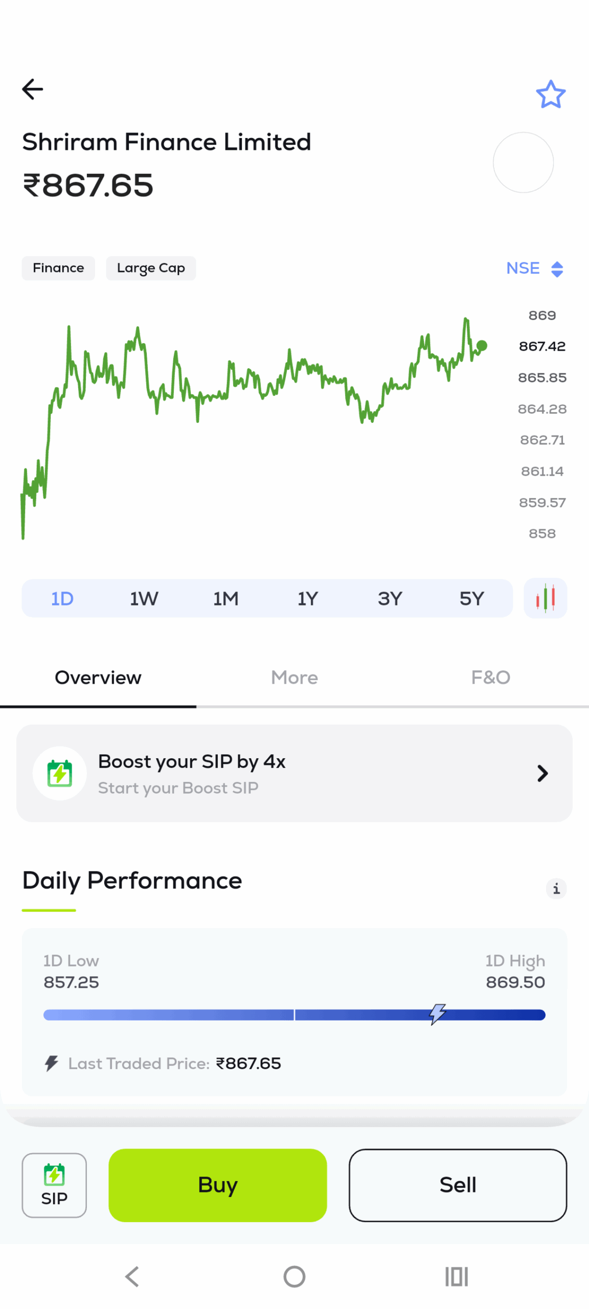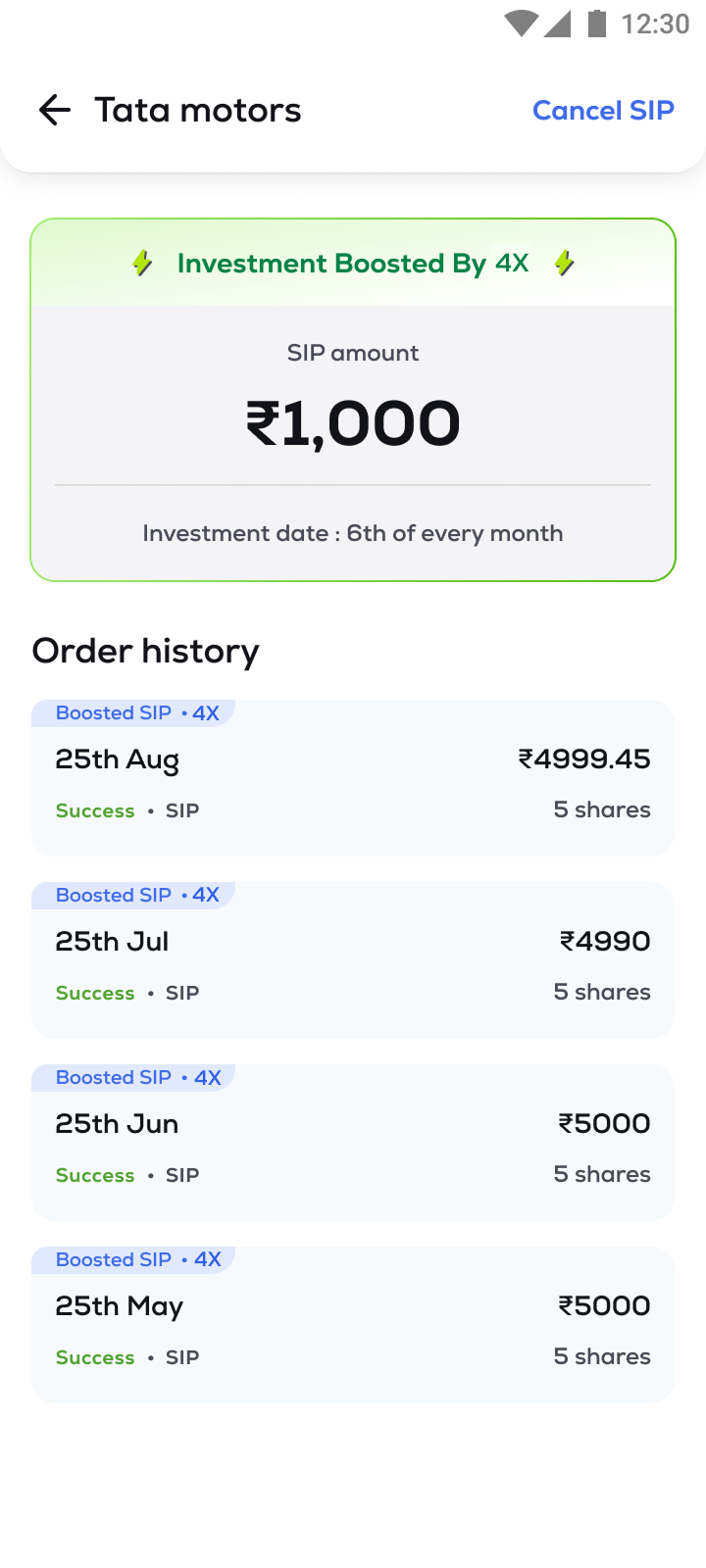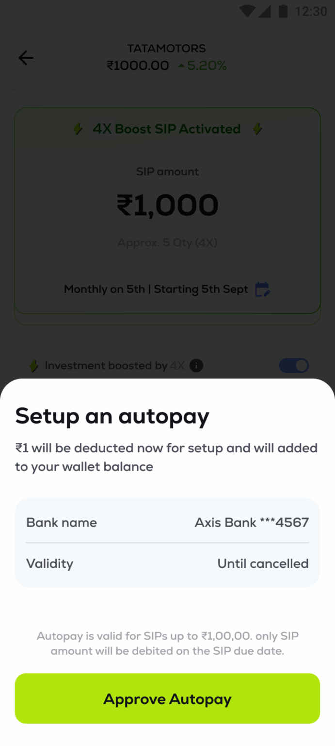 Note: If the stock does not have MTF enabled, you will not see the Boost Investment toggle. However, you can proceed with normal SIP in the stock