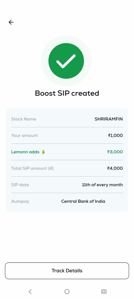 On the confirmation screen, you will see a Track Details button. Tap it to view your SIP transaction list, where you can monitor all your SIPs.
